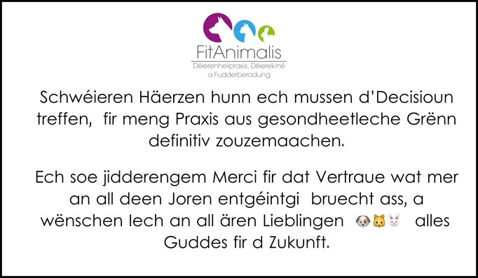 Eine naturheilkundliche Behandlung stellt eine unterstützende Maßnahme dar und ersetzt und keinesfalls den Besuch beim Tierarzt !